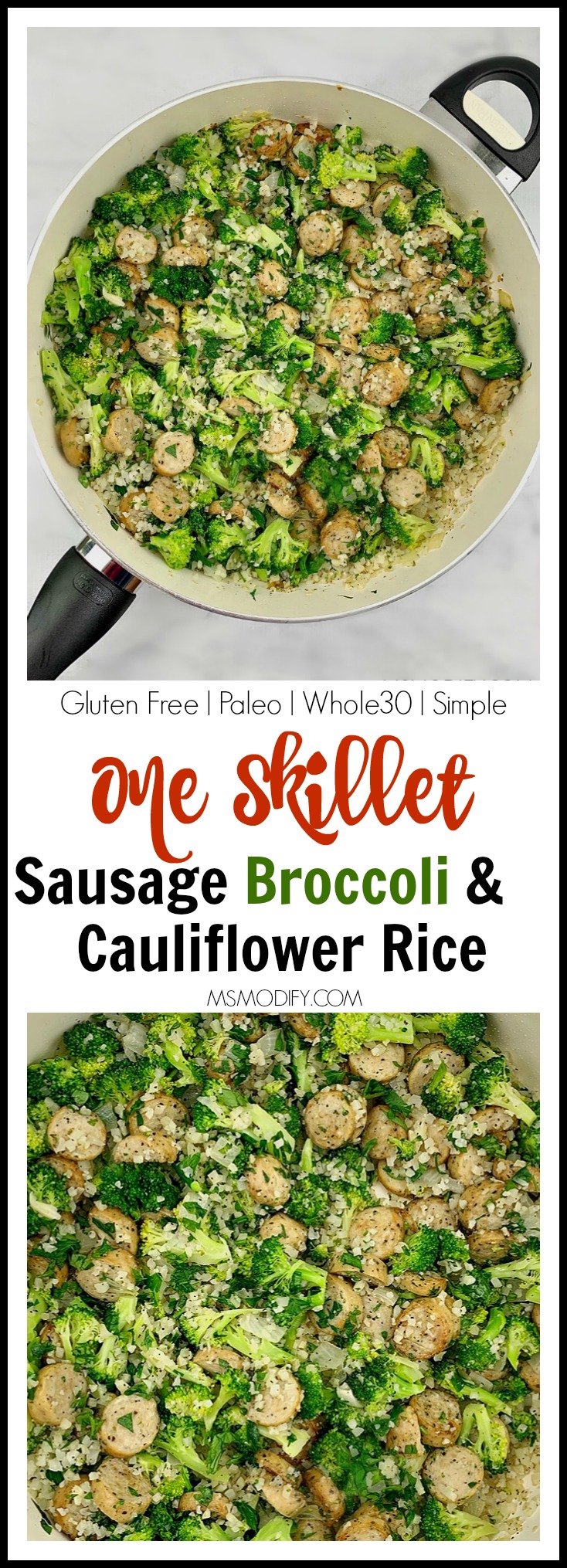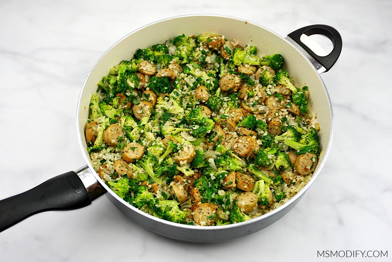 One Skillet Sausage Broccoli & Cauliflower Rice