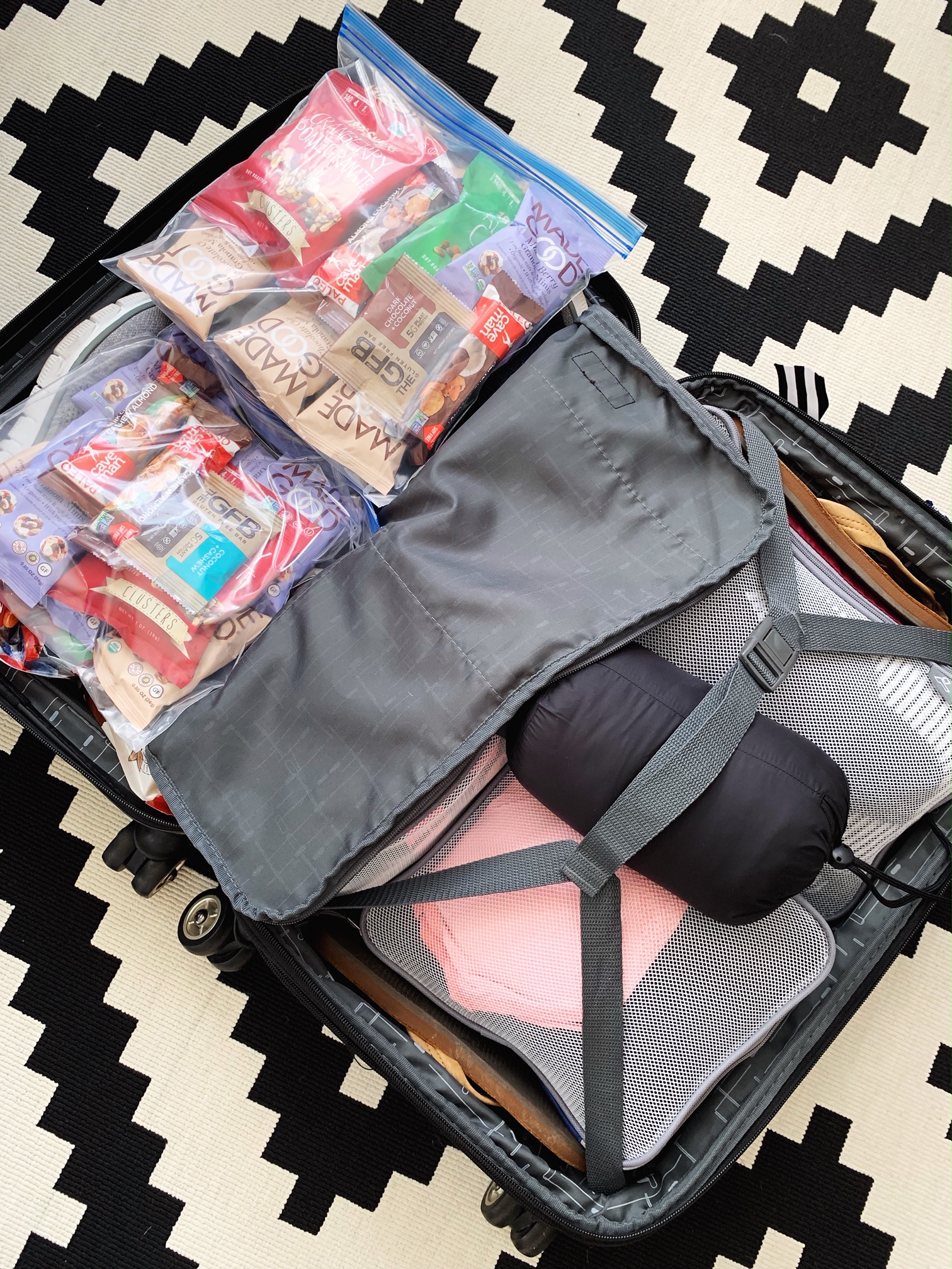 You know you have celiac when… half of your suitcase is food! I also packed Tupperware and a plastic cutting board (we stayed at an Airbnb so we had a full kitchen). Also, notice my life-changing packing pods!