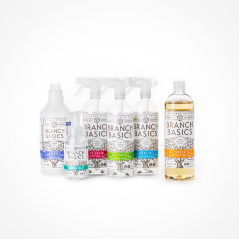 Branch Basics is a brand I use and love! What makes this brand unique is that they have one multi-purpose concentrate that you use for all the different varieties of cleaning supplies but the concentrate to water ratio changes depending on the product. Also, the first time you buy them you get the bottles and then just buy the refill concentrate afterwards, which helps reduce single-use plastics!